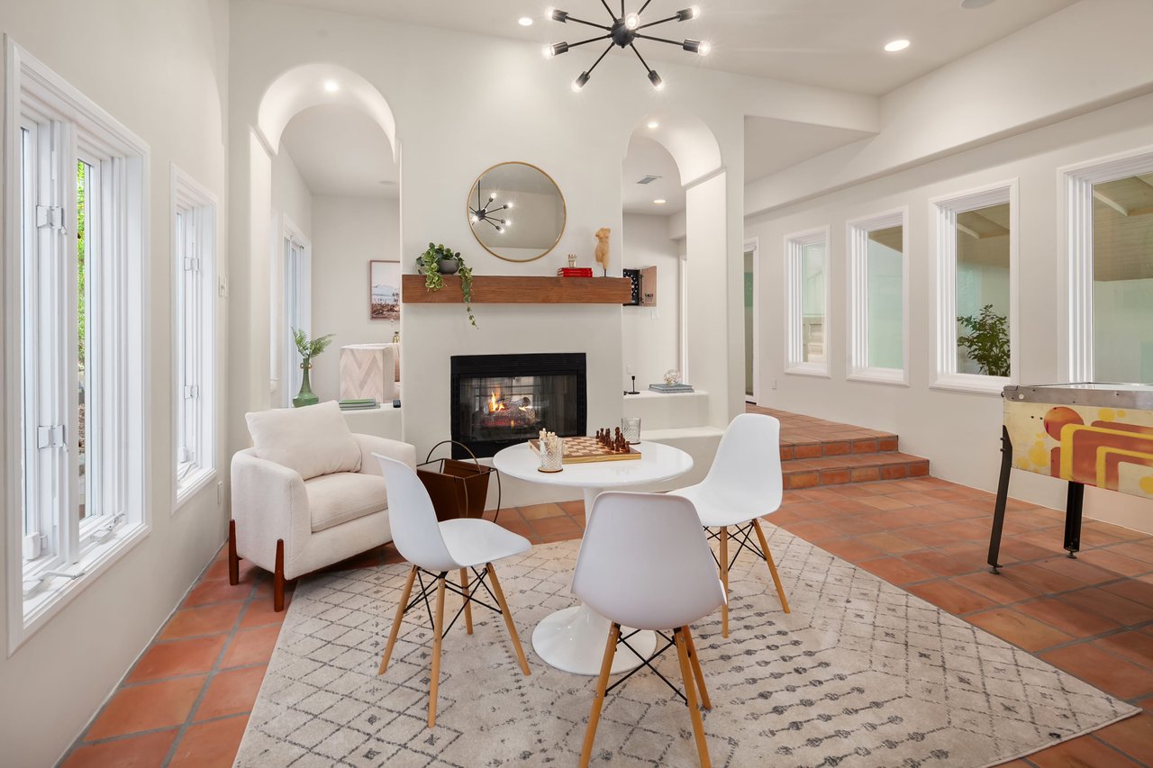This spectacular, contemporary Spanish compound is located in the secluded enclave of The Los Feliz Oaks, just steps from Griffith Park. The home is completely gated, renovated & turn-key. Luxurious & light-filled, the home perfectly balances designer sophisitication with its natural, hillside surroundings. Enter into the foyer & step down into the living room & library filled with windows, abundant light and a stunning fireplace. The formal dining room leads into the gourmet kitchen with Carrera marble counters and top end appliances. Multi-levels decks off the living and dining rooms, perfect for entertaining under views of the hills to the observatory. Light up the fire pit and enjoy unparalleled sunsets. Bright with vaulted ceilings & epic views to downtown, the master bedroom has an spacious en-suite bath & walk-in closet. Double vanities & shower have exquisite marble finishes. Luxuriate in the clawfoot tub with hillside views. 2 other bedrooms & bath are found on the third floor. A lower level boasts a family room, game room, wet bar & fourth bedroom with private entrance & en suite bath. The jewel of the home is a semi-covered pool & spa with multiple areas for lounging & dining. Rock out in the professional music studio (garage conversion). Park up to 6 cars. Just Steps from trails, schools, dining & boutiques, this private hideaway has it all.